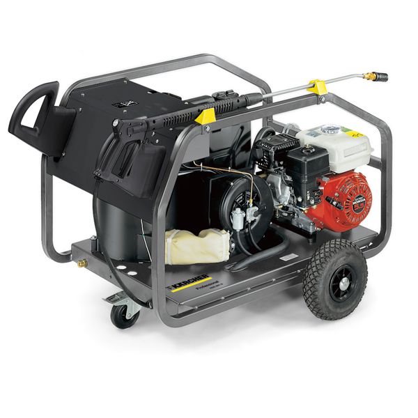 Idropulitrice a caldo carrellata con motore a scoppio, utilizzo universale ovunque non sia disponibile la rete elettrica.