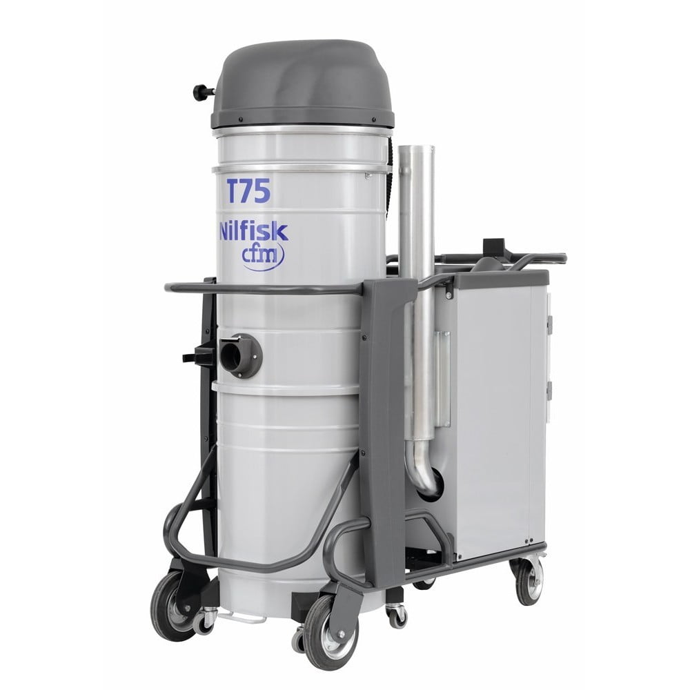 L’aspiratore T75 è davvero molto potente (7,5 kW), produce una grande depressione combinata ad un’elevata portata d’aria ed è quindi perfetto per aspirare grandi quantità di materiali anche pesanti. Inoltre questo aspiratore può essere utilizzato come unità aspirante negli impianti centralizzati fissi, per la pulizia di grandi aree. Il filtro, di ampie dimensioni e in classe M per polveri tossiche, viene pulito automaticamente dallo scuotifiltro elettrico. Il T75 è fra gli aspiratori più utilizzati nelle aziende in tutto il mondo. Potente ed affidabile aspiratore industriale trifase per aspirare liquidi e solidi di ogni tipo, anche i più pesanti.