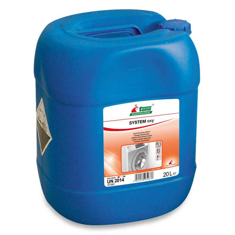 SYSTEM oxy garantisce un elevato punto di bianco sui tessuti, grazie alla efficacia del perossido di idrogeno alle alte temperature.