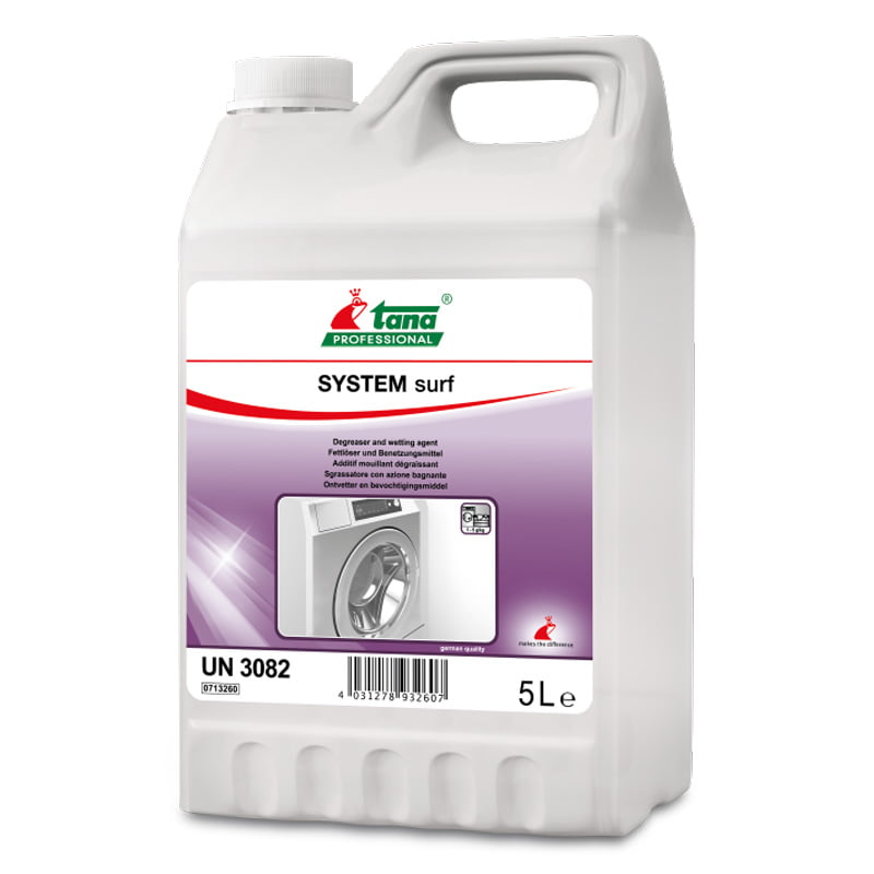 SYSTEM surf, grazie alla sua formulazione particolarmente ricca di tensioattivi, consente il lavaggio ottimale di tutte le fibre sintetiche.