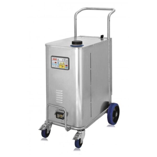Generatore di vapore TRIFASE sistema di ricarica automatica con controllo elettromeccanico livello acqua in caldaia – True Temp™, carrozzeria in acciaio inox con grado di protezione IPX5, possibilità di collegamento alla rete idrica e pannello di controllo a bassa tensione.