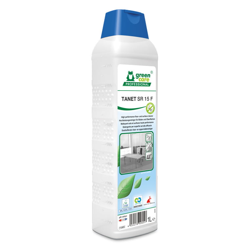 TANET SR15 F è un detergente di manutenzione ad altissime prestazioni per pavimenti e superfici, senza profumo né colore, con eccellenti proprietà ambientali. Rispetta la salute delle persone e la sicurezza degli operatori.
